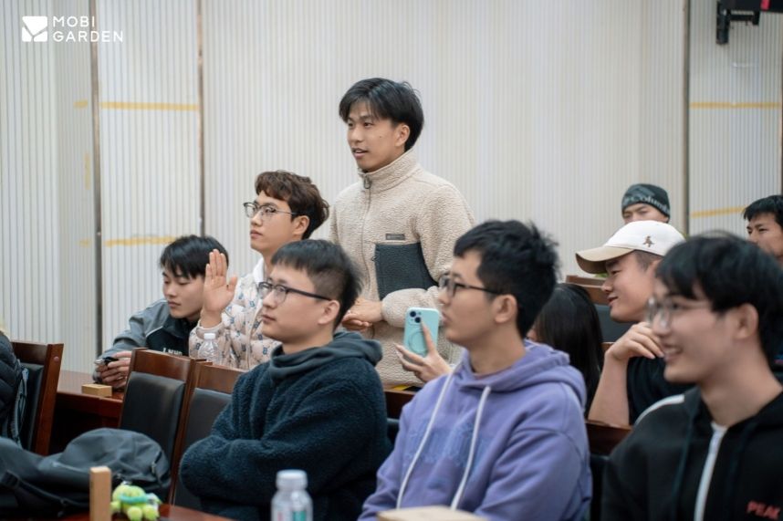 活动还特邀户外徒步达人石头(周扬),以户外安全教育、徒步经验与路线分享为主题展开主题交流与分享。石头以其丰富的横断山脉与国内其他线路徒步经历现身说法,分享高海拔徒步风险识别与应对,包括如何应对“失温”、搭建庇护所等实战话题,为参与者提供了宝贵的安全指南和装备建议。分享结束后石头还与同学们面对面交流,现场气氛热烈,笑声不断,原定1小时的活动,持续了近1小时40分钟,同学们仍意犹未尽,活动取得圆满成功。